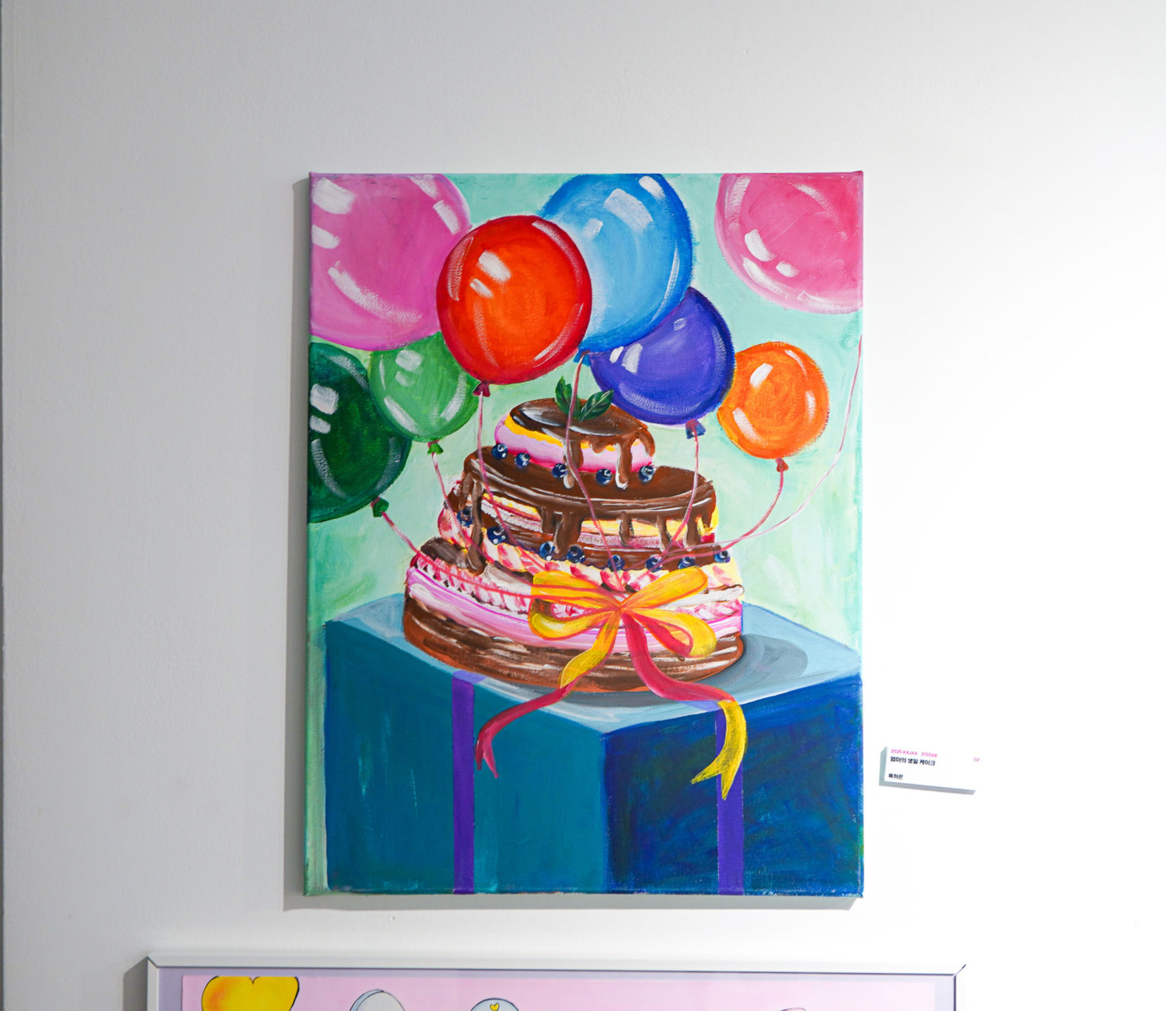 엄마는 참 대단하세요. 내가 하고 싶은 일, 갖고 싶은 것을 언제나 나보다 더 잘 알고 계세요 언제나 우리 가족만 챙기시는 엄마의 생일 케이크는 제가 준비 하고 싶은 마음을 그린 그림입니다. 빵빵하게 공기가 가득 채워진 풍선은 내가 엄마를 사랑하는 마음을 표현한 것이구요~ 파랗고 단단한 케이크 상자는 제가 엄마를 믿고 따르는 마음의 형태입니다.