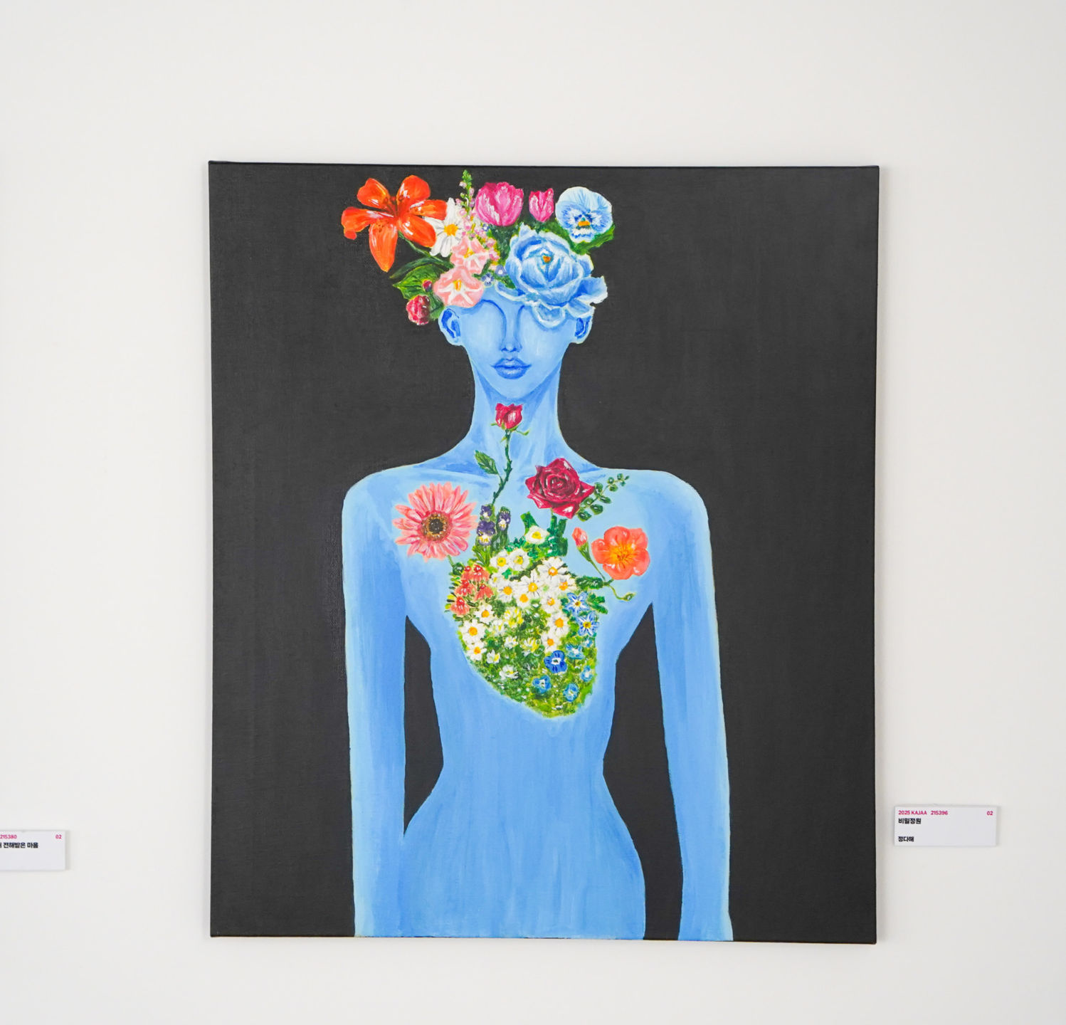 이 작품 속 인물의 심장에는 다양한 꽃들이 자라나고 있다. 그 꽃들은 아무도 볼 수 없는 마음 깊은 곳인 심장에서 피어나 인물의 몸 안에서 퍼져 나가고 있다. 머리 위에 핀 꽃들은 그렇게 전해진 마음이 감정으로 이어져, 세상 밖으로 드러나는 것을 나타낸다. 마음은 스스로도 인식하지 못했던 감정과 생각들이 뿌리를 내리고 피어나 정원처럼 아름다워졌을 때 비로소 느껴진다. 비록 누구에게도 보이지 않고, 본인조차 깨닫지 못하지만, 그 마음은 확실히 존재하며 결국 누군가에게 전달된다. 보이지 않는 마음이, 결국 누군가에게 닿아 꽃을 피우고 있다.